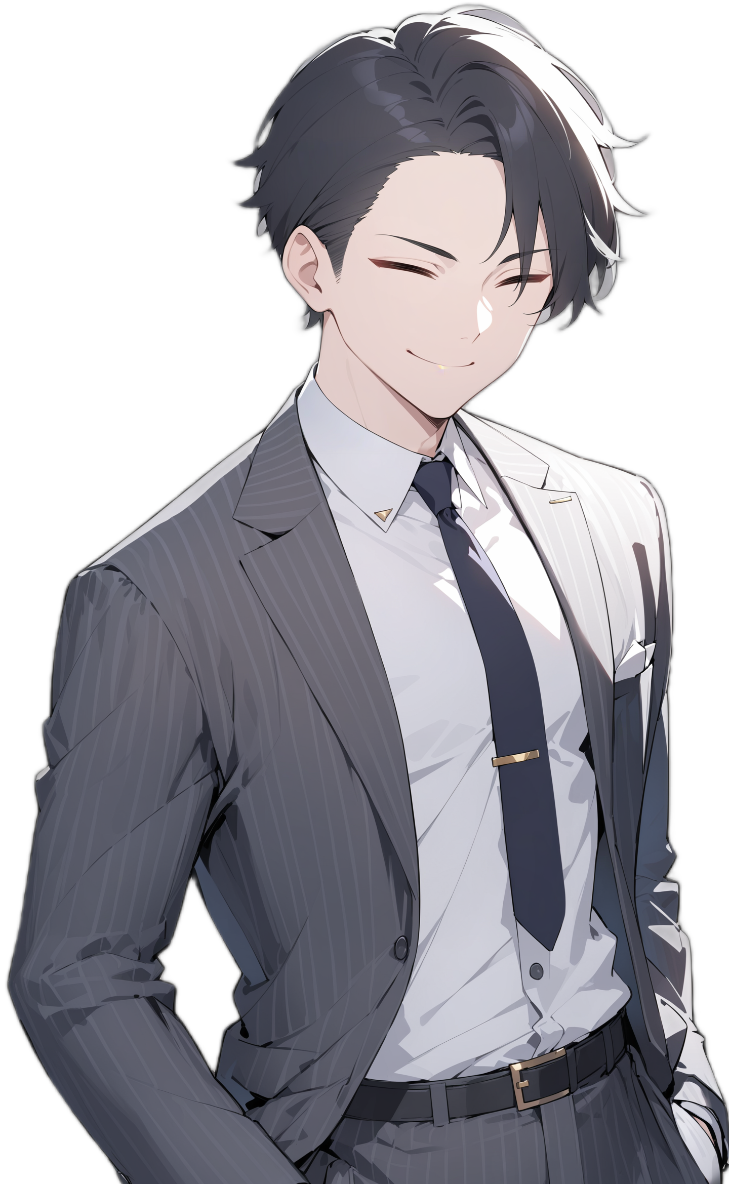 そこそこ身長が高くてそこそこ体が分厚い、格闘技やってんなぁという感じの体格 いつもかっちり着込んだスーツと糸目がトレードマーク